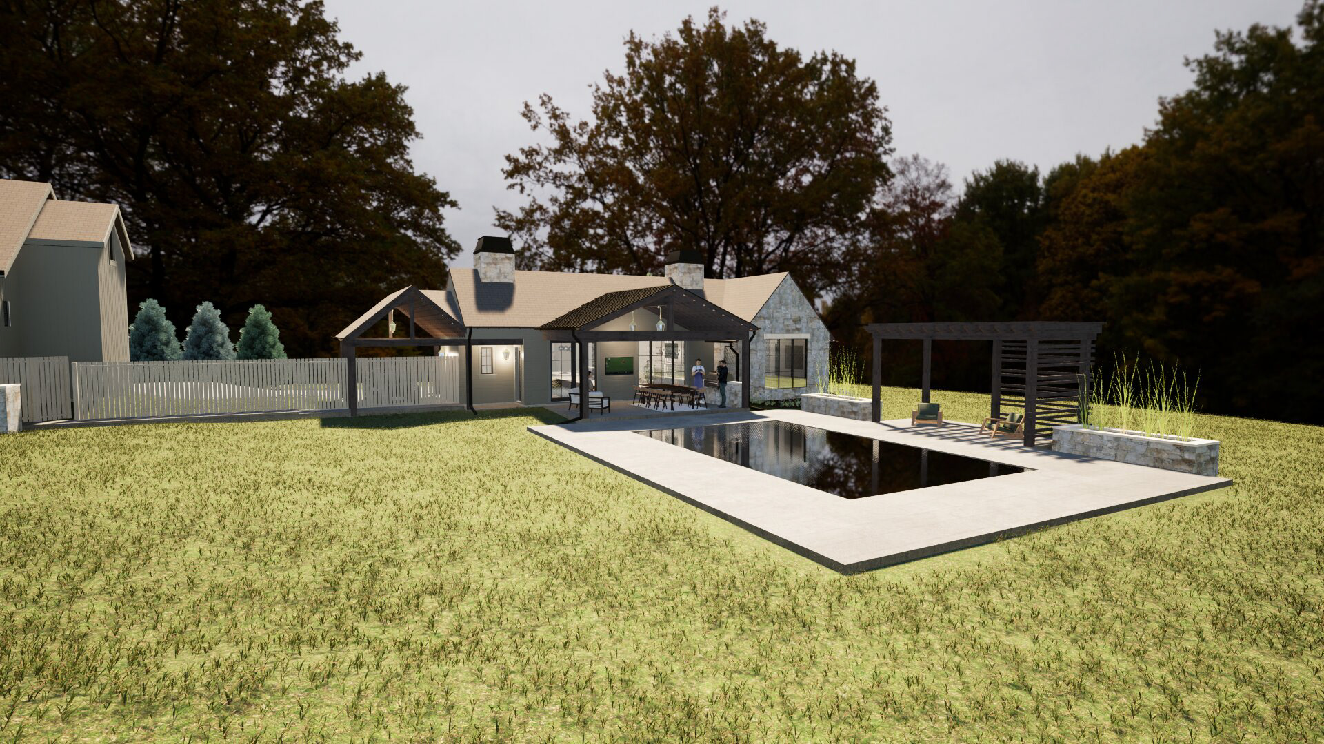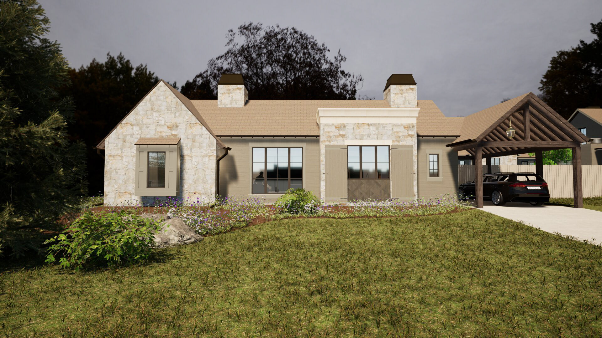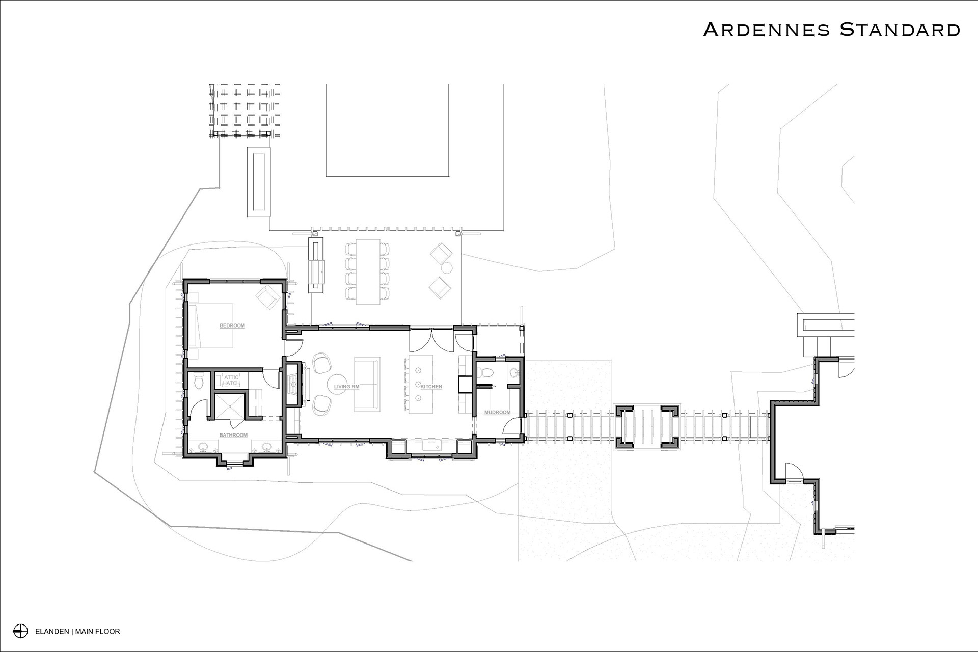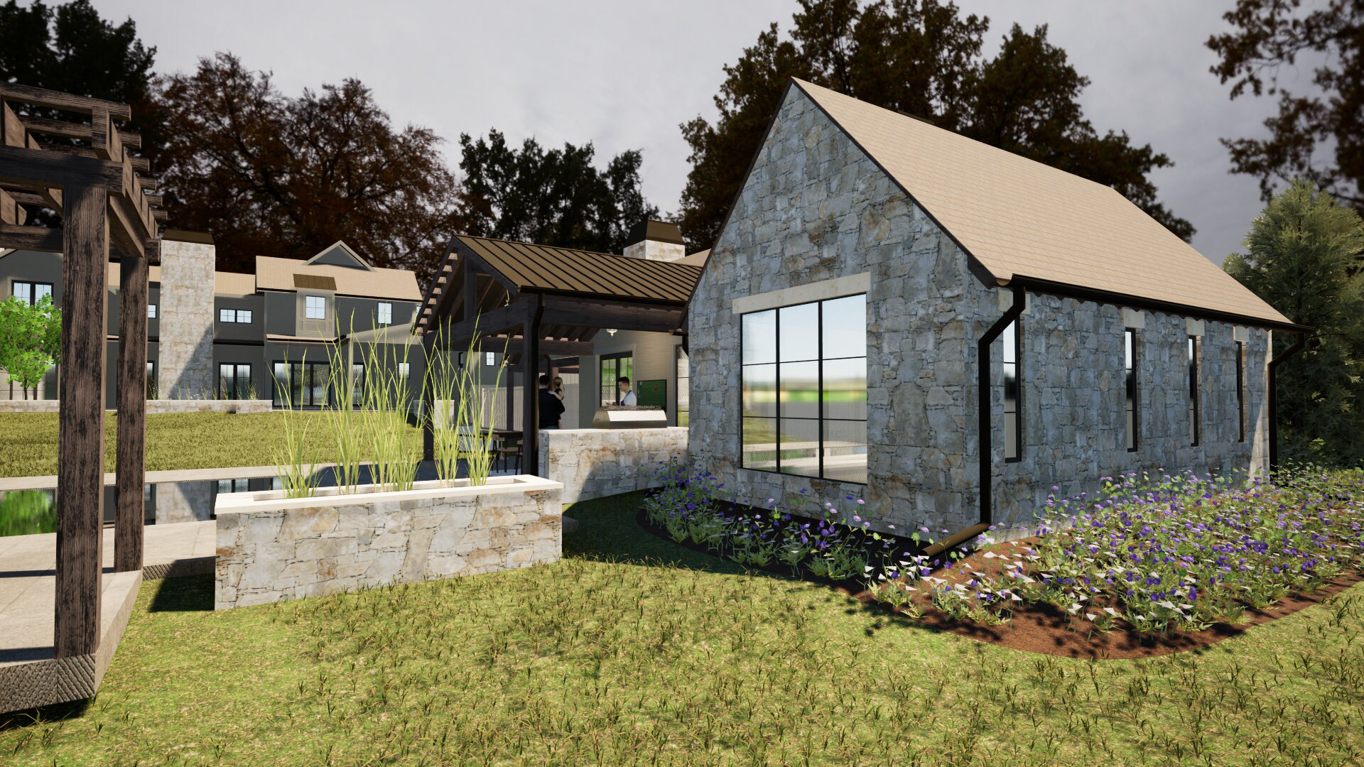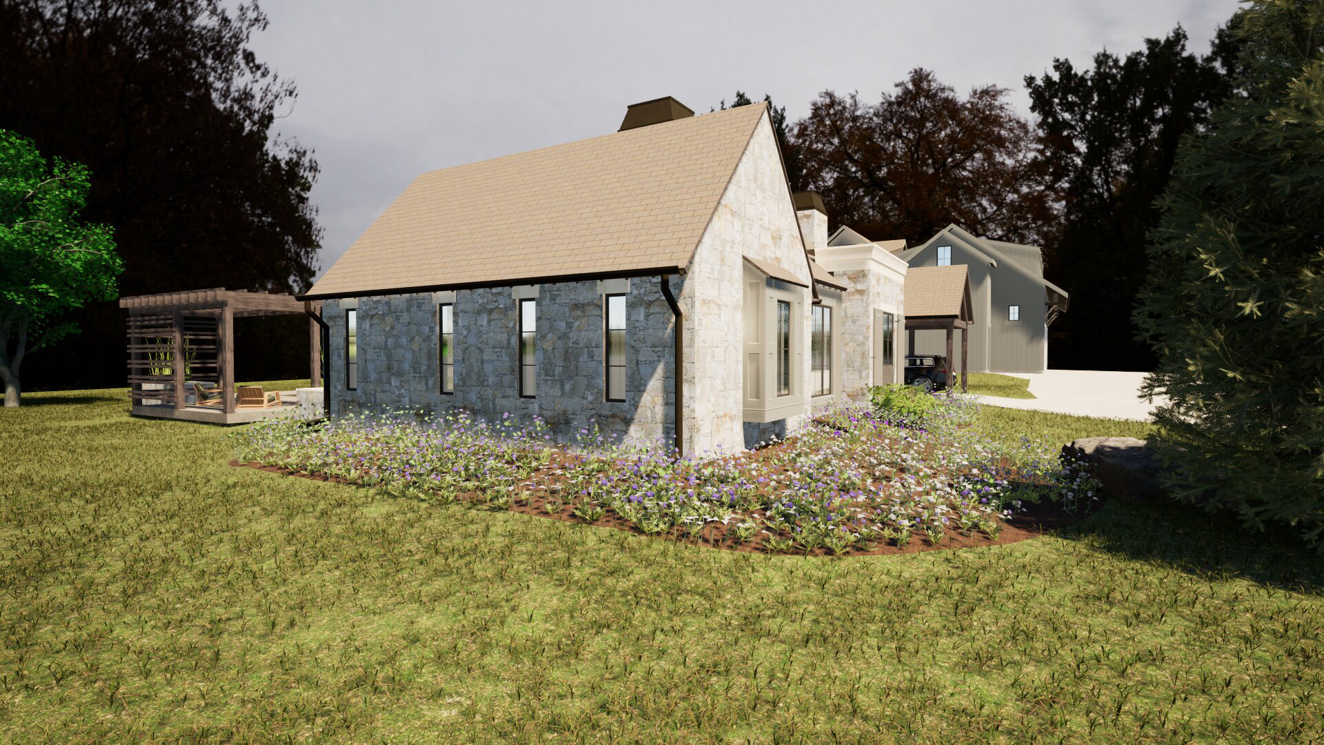 A cozy little retreat adjacent to a primary residence. Using a little bit of creativity, we were able to simultaneously meet the programmatic needs without breaking the zoning code's requirements.